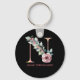 N Monograma Floral Letras Chaveiro de Agato Rosa