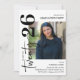 Comemore em estilo com este convite para Festa de formatura de fotos com script de caligrafia mínimo. Design apresenta um fundo branco clássico, que pode ser alterado para qualquer cor, uma imagem do formando, o texto 'vinte25 no roteiro de caligrafia e um modelo moderno de partido que é fácil de personalizar usando o modelo. O reverso é decorado com conselhos de argamassa.
