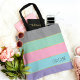 Na moda e clássico contemporâneo com design de stripes coloridas cor rosa e roxo. Personalize colocando seu nome. Belo, original e legal cobrir para o amante de bolsas de tendências e classe.