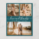 Orçamento, Elegante, Teal de Casamento com Mão (3) Colagem de Três Fotografias Obrigado A Você Personalizou barato de baixo orçamento THIN. Modelo de cartões de agradecimentos de casamento moderno e na moda com três fotos na frente e uma foto na parte de trás. ***POR FAVOR, NOTE! *** O PAPEL ORÇAMENTAL/FLYER É FINO. *** ATUALIZE O PAPEL PARA UM PAPEL MAIS ESPESTO. *** Com o texto "Amor e obrigados" em uma fonte de script de tipografia escrita à mão robusta, com oscilações a preto no fundo verde-escuro. Pequena forma cardíaca entre os nomes. Personalize o nome personalizado e a mensagem do obrigado. Se preferir escrever manualmente a sua nota, basta eliminar o texto de amostra para obter mais espaço. Se precisar de ajuda ou item correspondente, entre em contato com o designer!