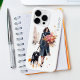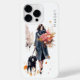 Chic, na moda com buquê floral. Ela está caminhando com o cachorro pela cidade. Esta capa de telefone é personalizável com um nome no lado superior direito em uma fonte de sans da cinza escura.