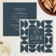 Finalmente, você se mudou e é hora de comemorar! Convide seus convidados para uma festa de inauguração com estes convites personalizados para na moda. Um design simples, porém chic, com um padrão moderno do século médio numa paleta de cores contemporânea. Este modelo versátil apresenta texto totalmente personalizável, para que você possa personalizá-lo em diferentes ocasiões. Cores impressas: azul-preto e esbranquiçado.