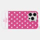 Adicione um toque de charme lúdico ao seu telefone celular com este gabinete chic iPhone 15 Pro Max com um padrão de bolinhas branco e rosa. Projetado para aqueles que amam um estilo divertido e feminino, este caso também é personalizável para torná-lo exclusivamente seu. Personalize-o com o seu primeiro nome numa bela escrita, e adicione as suas iniciais num monograma de na moda para uma dose extra de sofisticação. Também faz um presente excelente para aniversários e todas as ocasiões.