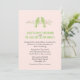 Na moda de convite para casamento feito em um fundo rosa muito pálido, com gráficos de uma terra floral verde e rosa com dois pássaros de amor verde, no topo. Personalize todo o texto para o seu dia especial. Produtos correspondentes disponíveis.