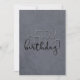 Cinza, efeito texturizado com um texto de na moda moderno entrelaçado que diz: Feliz Aniversário! O texto no verso é facilmente personalizado, use as fontes, estilos e cores de que você gosta! Design original por Cherie