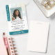 Crie uma aparência profissional com este crachá de ID de na moda. Um design elegante com padrão de estrela geométrica em cores gradiente. Este modelo de dois lados é personalizado com sua foto, seu nome, informações comerciais e um código de QR digitalizável. Personalize o texto para se adequar à sua empresa. Perfeito para um Notário Público, Agente de Assinatura de Empréstimo, Agente de Entrega de Confiança Notária Certificada, CNTDA, Notário Móvel, Apostille, profissional legal ou outro funcionário de negócios. Cores impressas: verde-azul-escuro, branco e ouro. Compre a coleção on-line para obter ideias e suprimentos de produtos mais populares, projetados para notários!