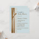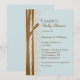 O convite para o chá de fraldas de Na moda feito em azul de ovo de um ladrão de luz. Gráficos de renda crochetada de marfim e fitas marrons, decoram o lado esquerdo do convite. Personalize todo o texto para atender às suas necessidades de evento.