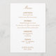 Na moda White Ouro Beige Wedding Menu, personalize, conforme necessário, usando o modelo Personalização on-line antes de fazer o pedido. Depois de digitar seu texto no modelo de personalização, se você achar que precisa ajustar o posicionamento do texto, use a opção "Editar usando a ferramenta Design" (o botão está disponível rolando para baixo no modelo de personalização). Um menu elegante com texto na moda num tom de ouro de bege (aparência falsa de ouro/ouro) num fundo branco tradicional.