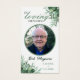 Esta carta de oração funerária com verde-d'água é uma maneira bela e elegante de lembrar um ente querido que passou. A delicada coroa de flores cor-de-rosa circunda uma foto do seu ente querido, enquanto a paleta de cor suave adiciona um toque de calor e ternura ao design. Este cartão de oração é uma forma adorável de honrar a memória de um querido amigo ou membro da família e oferecer conforto aos que ficaram para trás. Pode também servir de guardião para se agarrar e acalmar muito depois do funeral ou do memorial. Impresso em estoque de cartão de alta qualidade, este cartão de oração funerária é durável e bonito, uma oração confortável ou poema de sua escolha pode ser personalizado ao seu gosto. Escolha seu próprio texto e fonte para torná-lo realmente pessoal, e adicione o nome e as datas de seu ente querido para torná-lo um tributo significativo à sua vida. Ordene agora e comemore a vida de seu amado de uma maneira que seja elegante e sincera.