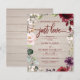 Linda e barata floral de burgundy em convites para casamento de madeiras rústicas. Fácil de personalizar com seus detalhes. NOTA: OS envelopes NÃO ESTÃO INCLUÍDOS; os envelopes do barato A7 estão disponíveis para compra separadamente. PERSONALIZAÇÃO: se você precisar de personalização de design, entre em contato comigo para jogar o bate-papo; se você precisar de informações sobre seu pedido, opções de envio etc., entre em contato com o suporte da Zazzle diretamente https://help.zazzle.com/hc/en-us/articles/221463567-How-Do-I-Contact-Zazzle-Customer-Support-. Verifique se há itens correspondentes na coleção como adesivos da lista de convidados.