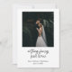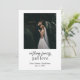 Este anúncio mínimo de elopemento preto e branco é uma bela maneira de compartilhar as boas notícias com seus amigos e família. Este design apresenta novas fontes e um espaço para inserir sua própria foto. O verso contém espaço para texto adicional onde você pode incluir a data do seu casamento, localização e convidar seus entes queridos para uma recepção ou celebração.
