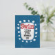 Um design tipográfico de nadador fofo que diz "Nade Como Se Você Estivesse a Sério". Ele apresenta texto preto e vermelho em um retângulo branco com pontos brancos divertidos e alegres ao redor, tudo em um fundo azul.