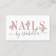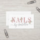 Cartão de visita de tipografia floral rosa de ouro moderno e elegante para um manicurista ou um salão de unhas. Um estilo exclusivo com tipo empilhado. Tipo antigo contrastado com tipo de script. Uma mistura de vintage e tipo moderno.