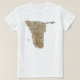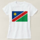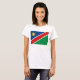 A frente desta t-shirt exibe corajosamente a bandeira da Namíbia com o seu sol amarelo distinto sobre o triângulo azul, a diagonal vermelha fimbriada e o triângulo verde. Isso é combinado atrás por um mapa atraente da Namíbia.