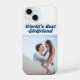 Capa de telefone com a melhor namorada em texto azul-marinho 3D. Personalize-o com a sua própria fotografia. Disponível para vários estilos de telefone.
