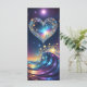 Uma vibrante cena celeste mostra um coração cheio de padrões intrincados e estrelas brilhantes contra um pano de fundo cósmico. Ondas giratórias de luz colorida e estrelas criam uma sensação de movimento e maravilha.