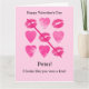 A cor rosa neste Feriado de Namorados relaciona-se a amor e compreensão incondicionais. Os corações são a primeira coisa de que nos lembramos quando pensamos no Dia do Namorados. Lábios são um símbolo de amor. Esta simples ilustração de um jogo popular é perfeito para surpreender seu Namorados no V Day. Personalize o texto na placa usando o modelo fornecido e escolha outro estilo de fonte, cor ou palavras.