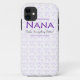 Bonito maleta floral roxa protegerá o telefone da nana em estilo. O texto diz "Nana - Torna tudo melhor!" Você pode personalizar este cobrir de telefone removendo o texto e adicionando o seu próprio.