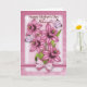 Um cartão cor-de-rosa misturado bonito do dia das mães com fita das borboletas e o daffodil cor-de-rosa. com os obrigados a Elena Delresario