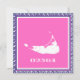 Mande um pouco de amor da Sconset com esta bonito placa de nota plana rosa-quente. Com um Nantucket gráfico branco e um código zip Sconset branco, a borda azul da chave grega termina com um florescimento!