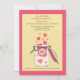 Esta ilustração de jarro de pedreiro desenhado à mão com uma tampa aberta e corações em fuga tem um fundo de bolinhas amarelo emoldurado. É um convite encantador para uma festa de janto de ensaio de casamento.