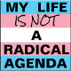 Proclama "Minha vida não é uma agenda radical" sobre uma bandeira do Orgulho Transgênero. Esta camisa T é uma declaração política! Com tanta legislação anti-trans nos EUA, está a ser dito às pessoas que existe uma "agenda radical" - quando, de fato, as pessoas trans estão apenas a tentar viver uma vida segura.