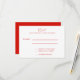 Uma placa RSVP com um design vermelho e branco limpo. Isso faz parte de um convite.