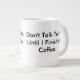 Esta é uma grande caneca de café branca com as palavras - não fale comigo até eu terminar meu café impresso nela.