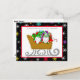 A mão traçou gnomos de Natal em trenó com brinquedos e presentes festivos cartões de Natal.