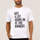Não muito acontecendo no momento da camiseta no momento Esta não é muito acontecendo no momento da camiseta no momento é uma forma excelente de mostrar seu senso de humor e seu apreço pelas coisas simples na vida. A camisa apresenta uma design ousada e humorística de uma pessoa sentada em uma cadeira com as palavras "Não muito acontecendo no momento" impressas nela. Esta camisa é perfeita para qualquer pessoa que se sinta um pouco preguiçosa ou inmotivada. É também um presente excelente para quem conhece alguém que está sempre à procura de uma boa risada.