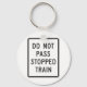 Esta design não passa no trem parado. Este sinal de estrada está avisando que você não vai passar no trem. Isto não passa design do comboio parado parece excelente neste Chaveiro