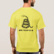 A caracterização da camisa não pisa mim no bolso traseiro e dianteiro do slogan sobre.