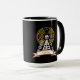 Para todos os operadores de radioamador maus do menino, esta caneca é para você! O gráfico é uma torre de radioamador (repetidor) com um operador do crânio com os olhos de incandescência vermelhos, como se é elétrico junto com uns auriculares e as linhas da freqüência que explodem de sua cabeça. Isto tem-lhe um olhar do motociclista-estilo e é-o igualmente customizável. Na parte superior, adicione o ano onde você obteve licenciado sob a palavra "desde." isto é "desde 1998." Então na fita da bandeira na parte inferior, adicione em seu sinal de chamada ou em um nome ou no nome de um clube? O texto ao longo do lado neste design lê o "nascer para ser o presunto" que é uma chalaça no nascer a ser selvagem da era dos anos 60. O design é feito com um fundo preto para trazer para fora o design. Não mostraria bem contra o branco de todo. Projetado por Sheila Cicchi em Brownielocks.com todos os direitos reservados.