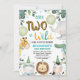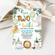 Cute Blue Nascer To Be Wild segundo aniversário Invitation Cute Boy's safari tematizado de segundo aniversário com seis doces animais da selva, balões, chapéus de festa e algumas folhagens.