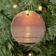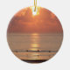 Ornamento com o sol da manhã que quebra através das nuvens macias no oceano e uma fileira dos pelicanos; Pasta de ©2014 Aaron