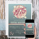 Retro convite ao estilo Vintage para uma queda de festa de aniversário! Prepare-se para se mover sob a bola de disco, com um esplaxo de tons de rosa claro e um script de vintagem de ranhura "1975" em um fundo tônico de gradiente azul escuro.