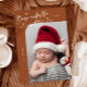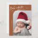 Cartão de nascimento elegante e moderno do tema do Natal, com um texto manuscrito escrito que diz "Nascer sob a alface". Este é um cartão de anúncio de nascimento para as férias! Adicione suas fotos, estatísticas de natalidade e uma mensagem! O fundo é terracota.