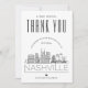 Mande um grande obrigado para sua família e amigos por viajar para vê-lo na maravilhosa cidade de Nashville, Tennessee. Esta carta única é personalizada para o local do seu casamento e apresenta uma linha do estilo deco moderno da cidade na frente com os nomes de casais casados embaixo. No lado oposto, há um lugar para a sua mensagem única embaixo de uma foto dos recém-casados felizes. Você pode experimentar as funções de personalização para mudar o filtro de fotos para cor de cheio, sepia ou preto e branco, dependendo de sua preferência pessoal. Você também pode redimensionar sua foto enquanto vê ajustado. Esta carta é uma maneira divertida e iluminada de obrigado dos seus convidados de casamento enquanto coloca um sorriso nos rostos deles. Todos os elementos deste item estão desbloqueados e ajustáveis, então lembre-se de se divertir sendo criativo e fazer seu!