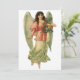 Clique no botão "personalizar" para acessar as ferramentas de design para alterar a cor de fundo e adicionar seu próprio texto personalizado! Muitos estilos de fonte a serem escolhidos! Ilustração Vintage Imagem de Natal feliz apresentando um corte vitoriano de anjo vitoriano. Este anjo religioso tem lindas asas e está segurando um pequeno galho de árvore de abetos. Deixe esta senhora angélica ajudá-lo a celebrar as festas desta temporada.