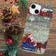 Vintage ilustration Victorian Felry Christmas image , imagem de Natal com um Papai Noel alegre, andando num cavalo de lua aberta na véspera de Natal. Está nevando durante o inverno com uma cidade sonolenta à distância. Árvores brancas cobertas com seus galhos cobertos de neve enquanto os flocos de neve caem suavemente do céu noturno.
