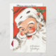 Fácil de personalizar o convite de festas de Natal, basta adicionar suas informações! Ilustração Vintage Imagem de Natal Feliz com um Papai Noel alegre sorrindo com um sorriso grande. O santo Nicholas está rindo e vestindo um chapéu peludo com algumas folhas e bagas sagradas.