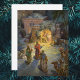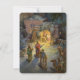 Imagem de Natal religioso, ilustração Vintage, com uma cena familiar nativa. Um design de religião cristã com os três sábios visitando Maria e José com o bebê Jesus Cristo na mangueira de Belém.