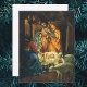 Vintage ilustrando design de Natal religioso apresentando uma natividade clássica. Uma cena familiar religiosa cristã com Maria, José e a criança Jesus Cristo na mangueira com cordeiro e ovelha. Belém.