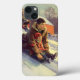 Ilustração Vintage Imagem de Natal feliz apresentando um pai com sua garotinha se divertindo de trenó ou entalando uma colina coberta de neve no inverno.