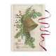 O sino de Natal é uma ilustração vintage com ramos verdes e bagas vermelhas. O sino está gravado com as palavras "Glória a Deus no Mais Alto". O texto abaixo diz "Um Feliz Natal".