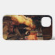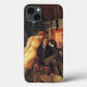 Ilustração vintage de Feliz Natal com imagem de um casal feliz e romântico abrindo presentes de Natal junto à lareira e árvore decorada. Saudações da temporada!