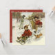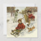 Ilustração antiga imagem de Feliz Natal com meninas e meninos felizes brincando e deslizando em uma colina coberta de neve no Dia de Natal. O irmão e a irmã estão se divertindo com seu novo trenó enquanto seu cachorrinho terrier está se divertindo também! Saudações da Temporada!