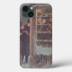 Ilustração antiga de Feliz Natal Vitoriano apresentando uma multidão de pessoas felizes ao ar livre na neve esperando para ir a uma festa de férias de inverno. Saudações da temporada!