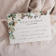 Esses cartões de resposta de feriado elegantes apresentam flores rústicas a cores aquáticas com pinecones, ramos, bagas, folhas e rosas brancas.