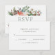 Esses cartões de resposta de feriado elegantes apresentam flores rústicas a cores aquáticas com pinecones, ramos, bagas, folhas e rosas brancas.
